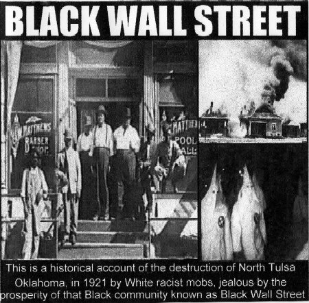 The Greenwood Heights neighborhood in Tulsa, Oklahoma was so prosperous and thriving with Black businesses it was referred to as “Black Wall Street.” The historic community was destroyed by racist mobs who abhored the success of the African-Americans in the area…Google it!